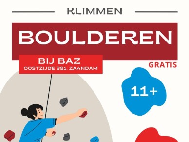 Gratis boulderen. Let op, wel aanmelden, zie flyer